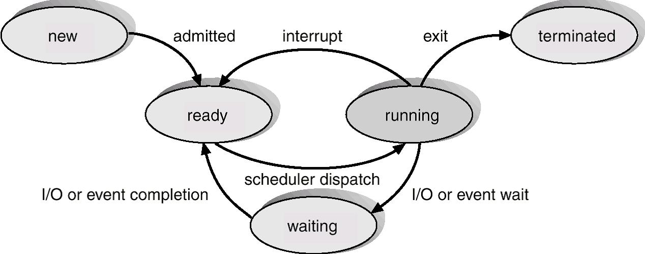 Status new, ready, running, waiting, terminated, dan juga banyak lagi.